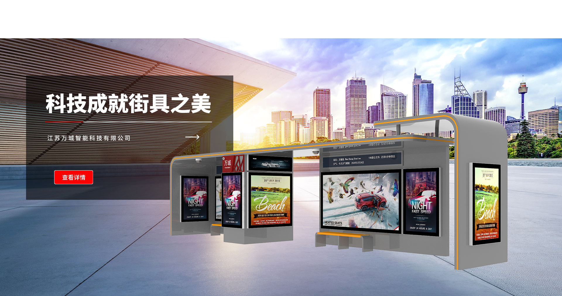 江蘇萬城智能科技有限公司是一家專業(yè)從事候車亭、公交站臺、公交候車亭生產(chǎn)制造廠家,提供項(xiàng)目設(shè)計(jì)、價格核算、生產(chǎn)安裝一站式服務(wù)。產(chǎn)品涵蓋城市、鄉(xiāng)鎮(zhèn)、仿古、中式、不銹鋼、現(xiàn)代、智能等多種候車亭類型。同時根據(jù)客戶的需求加工定制各種型號、規(guī)格的公交站牌、指路牌、站臺護(hù)欄、候車亭座椅等配套設(shè)施。萬城智能坐落于風(fēng)景秀麗的西楚霸王項(xiàng)羽故鄉(xiāng),在江蘇省宿遷經(jīng)濟(jì)開發(fā)區(qū)振興大道東側(cè),蘇州路南側(cè)(原三鼎織造院內(nèi)13-14號廠房)。